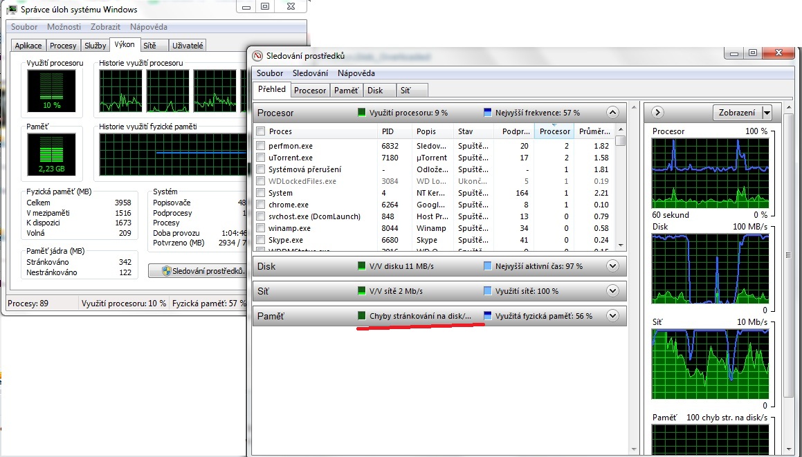 počítač sem různě pročistil.. udělal jsem i defragmentaci.. a už běhá tak o 50% lépe.. ale furt to není ono.. chci se zeptat, co znamená na tom screenu, jak je Paměť - chyby stránkování na disk/s: 0 .. červeně podrtžené.. co to znamená?