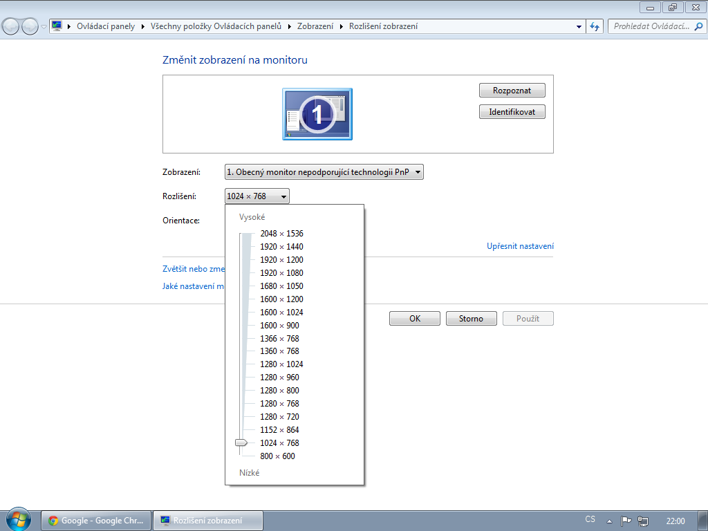 1366x768 funguje, ale je to úplně posunuté, jen 1024x768 vypadá OK, a všechny ostatní nefungují (TV…