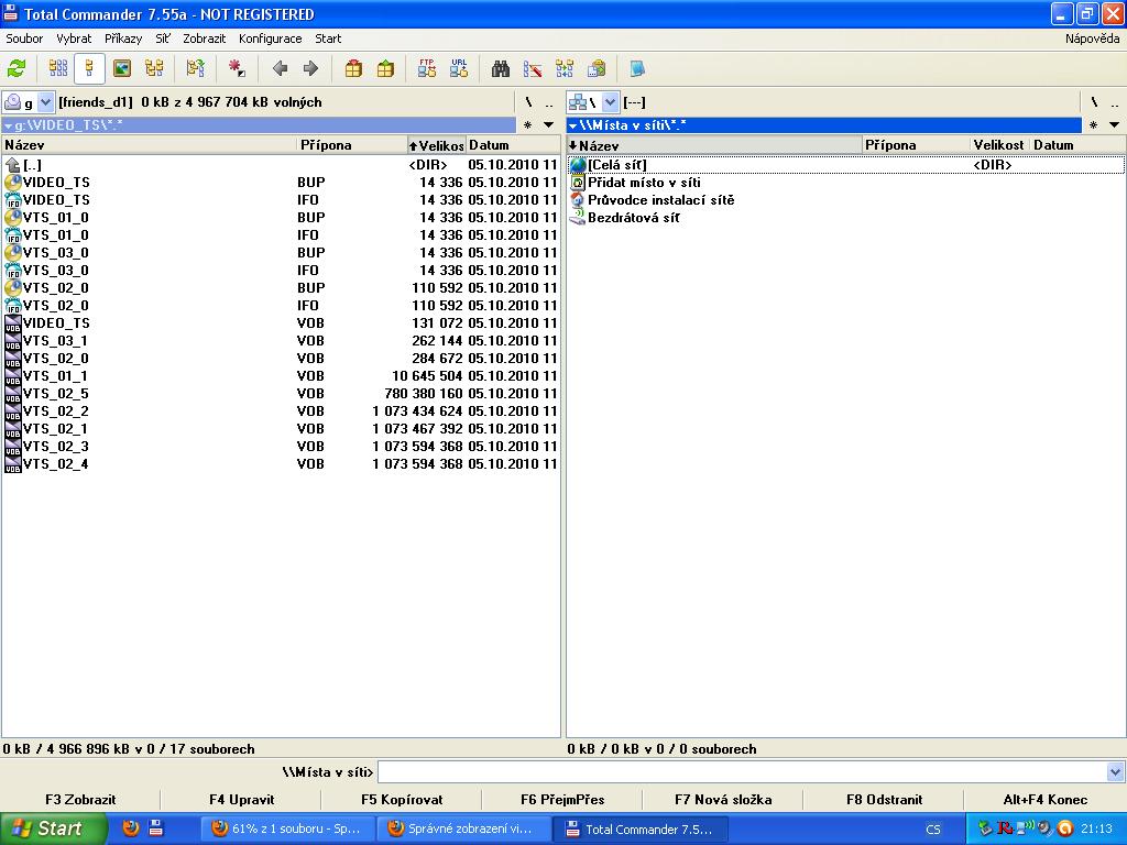 Po zobrazení disku v Total Commanderu se mi pouze objevily soubory s koncovkou *.VOB + další neznámé soubory :(