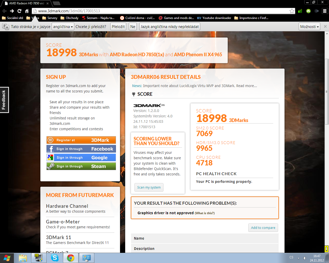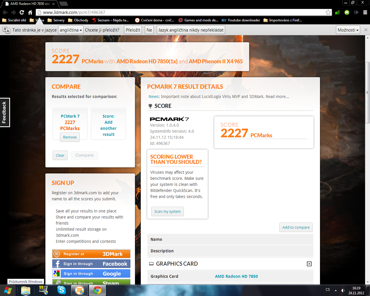 Ještě přikládám PCMark 7, a 3DMark 06