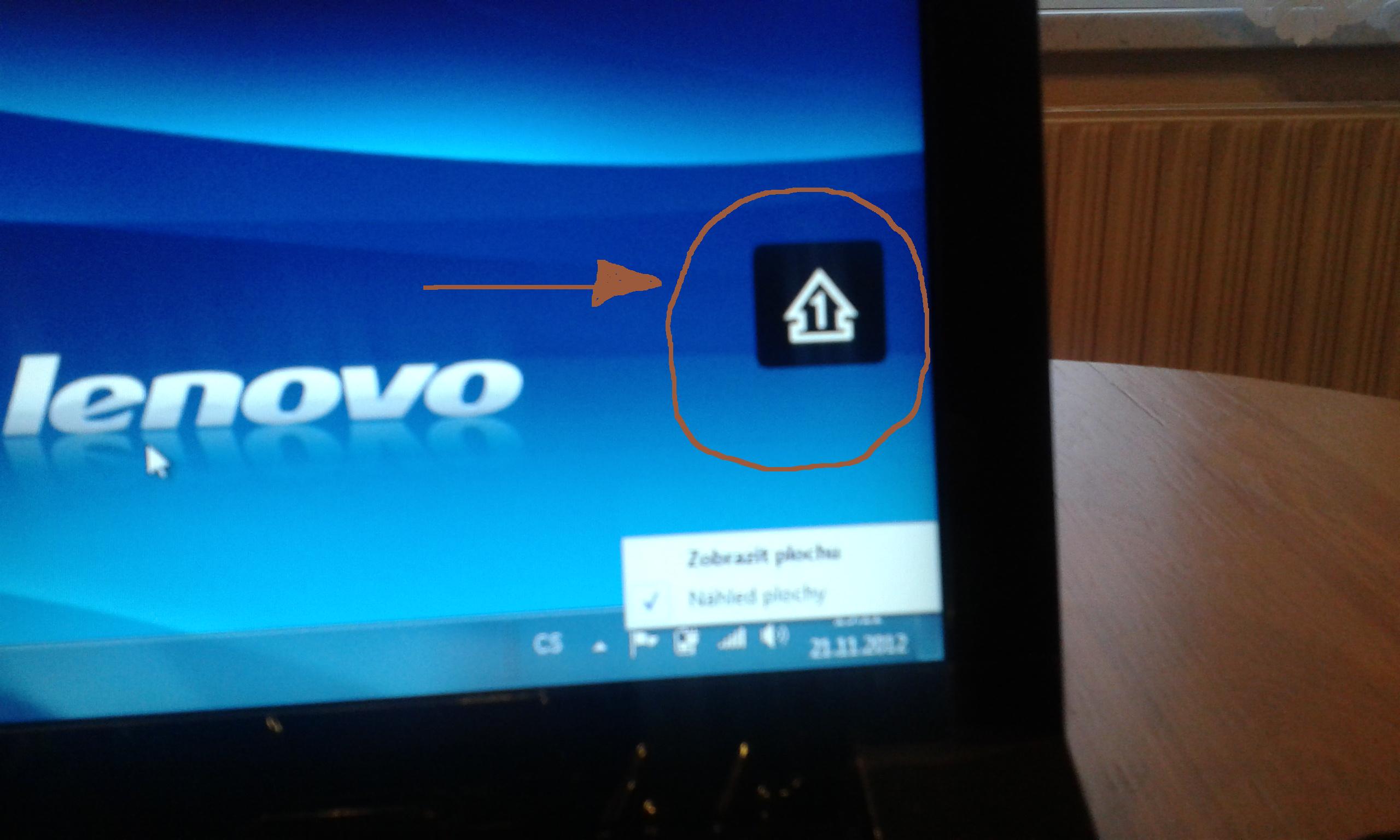 ahoj,na notebooku lenovo se kamarádovi objevila takováhle ikona-viz obrázek.Zmizí,když se najede myší na spodní lištu vpravo dole.Ale při pohybu myší jinam,se zase objeví.Zřejmně někam kamarád kliknul a neví kam.Já si myslím,že to má co dočinění s plochou,ale nevím,lenovo neznám.Tohle mi poslal,slíbil jsem mu,že se za něj zeptám jak udělat aby ikonka zase zmizela natrvalo.Děkuji M.