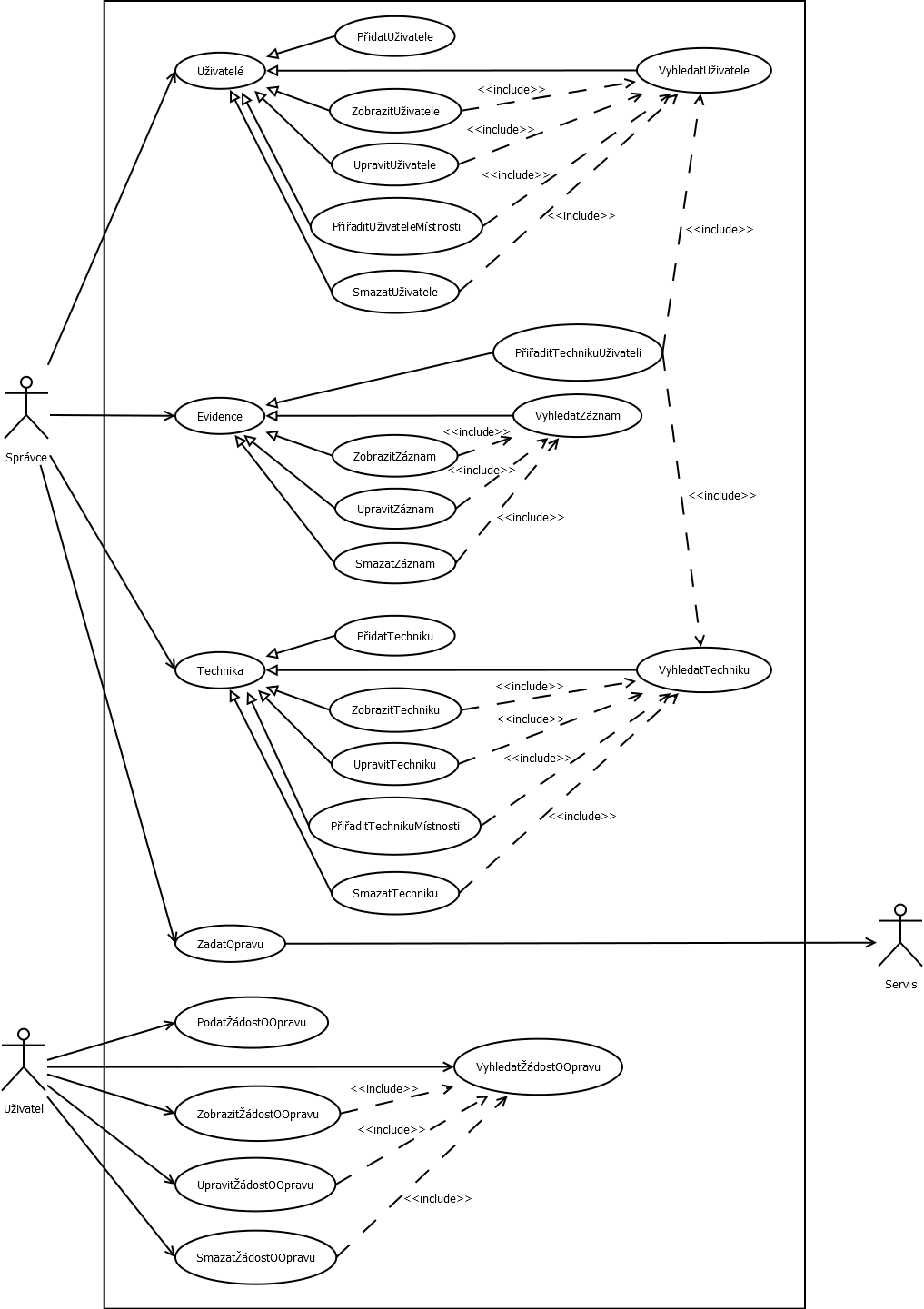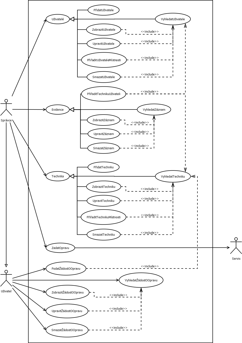 Use case popisuje, jake pripady mohou nastat. Osobne bych od spravce udelal 5 krabicek s nazvem Uzi…