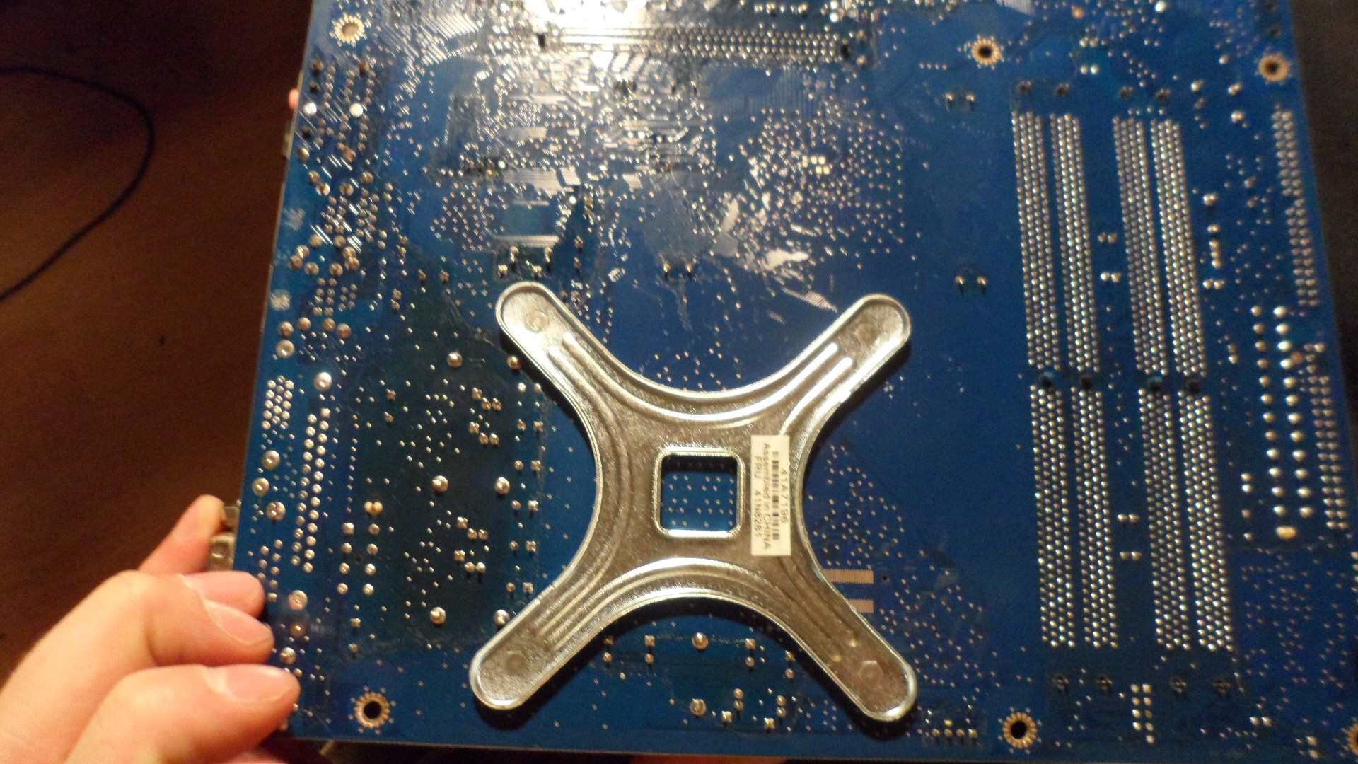 Je to pěkně vidět na fotkách. Tento chladič se uchopí na základní desku tak, že se strčí takové plastové konce do díry v motherboardu ale ty já mám právě zaplněné těmi nýtky.