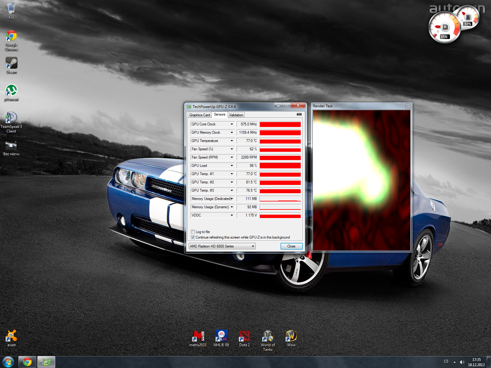 Tak 15 minut test. Teplota stoupala první 4 minuty, pak se ustálila až do konce. Teďka se mi začalo sekat i metro 2033