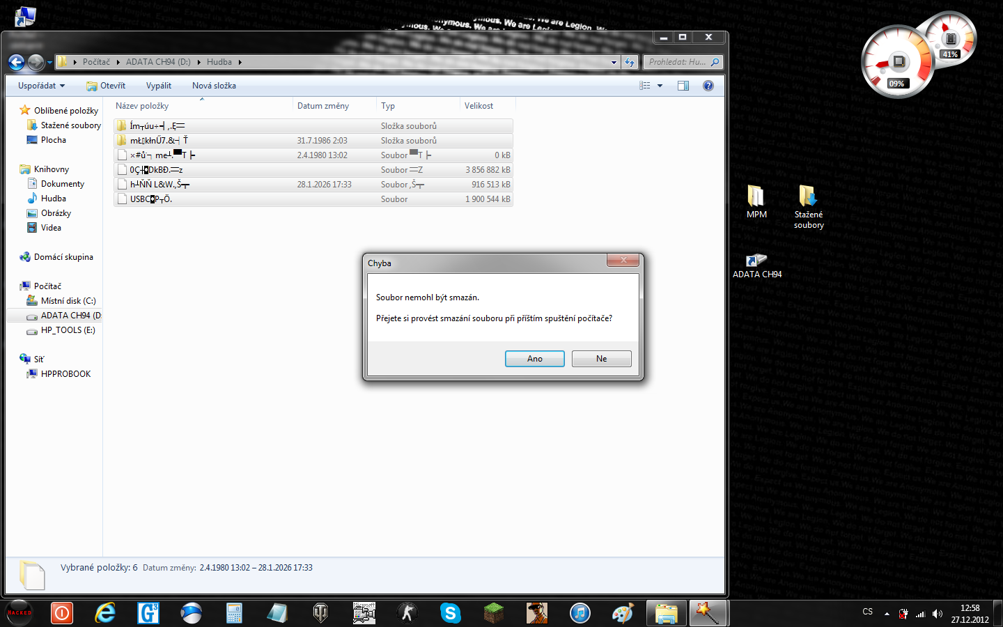 Ahoj, nevíte jak z externího disku vymazat soubory které nejdou odstranit ? viz foto