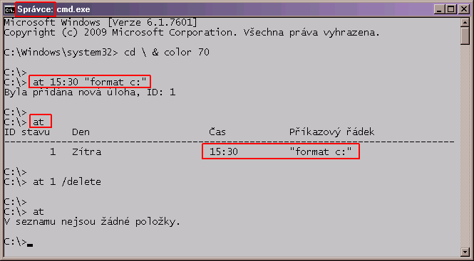 příklad: at 16:00 reg delete hklm\software\wow6432node\neco /f - pokud chci vymazat klíč i podklíče…