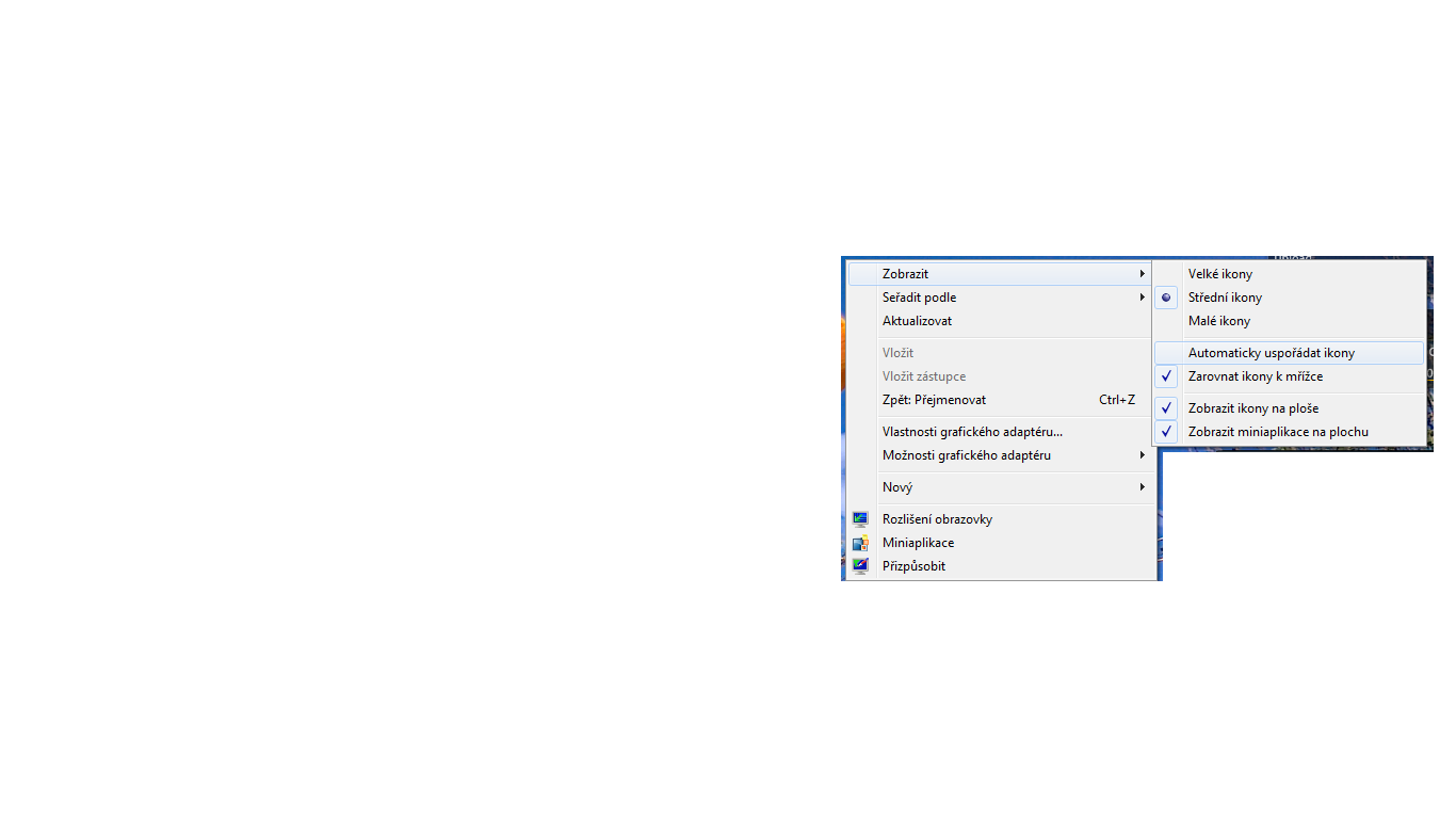 klikni na plochu pravym tlacitkem na myši poté klikni na zobrazit a vypni automaticky uspořádat ikony