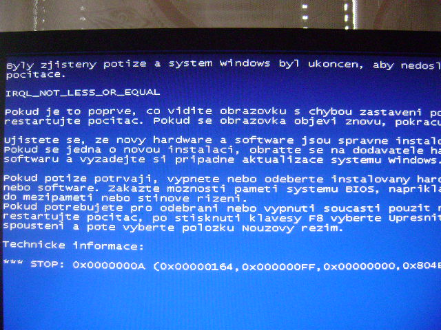 dalsi modra obrazovka, z chybou..hidusb.sys - Address AC1ACABC base at AC1A3000, Datestamp 480254c7