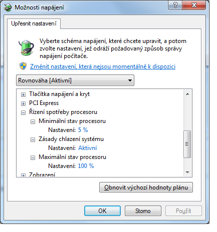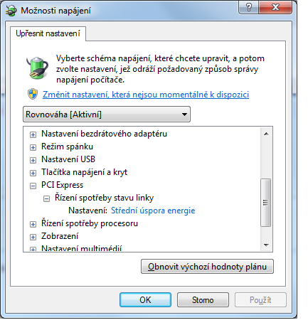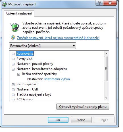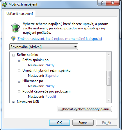 Ovládací panely\Všechny položky Ovládacích panelů\Možnosti napájení klik na aktivní profil a: Uprav…
