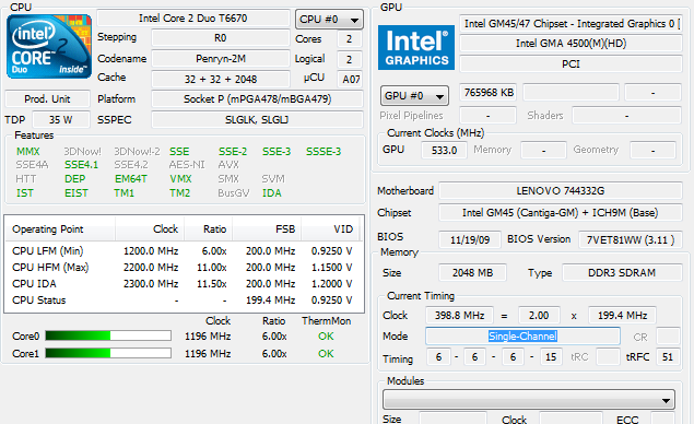 V notebooku je procesor AMD E2-3000m a grafická karta Radeon HD 6380G. Dual-channel jsem chtěl zprovoznit hlavně kvůli integrované grafické karty, která používá paměť RAM. Paměti jsou corsair 2x4gb ddr3 1333 MHz. Memtest ukazuje 64bit, pokud se nemýlím tak to znamená single channel. CPU-Z neukazuje vůbec nic. A v GPU-Z se zvýšila bus width ze 64 na 128bit resp. bandwidth z 1,6 na 21,3 GB/s.