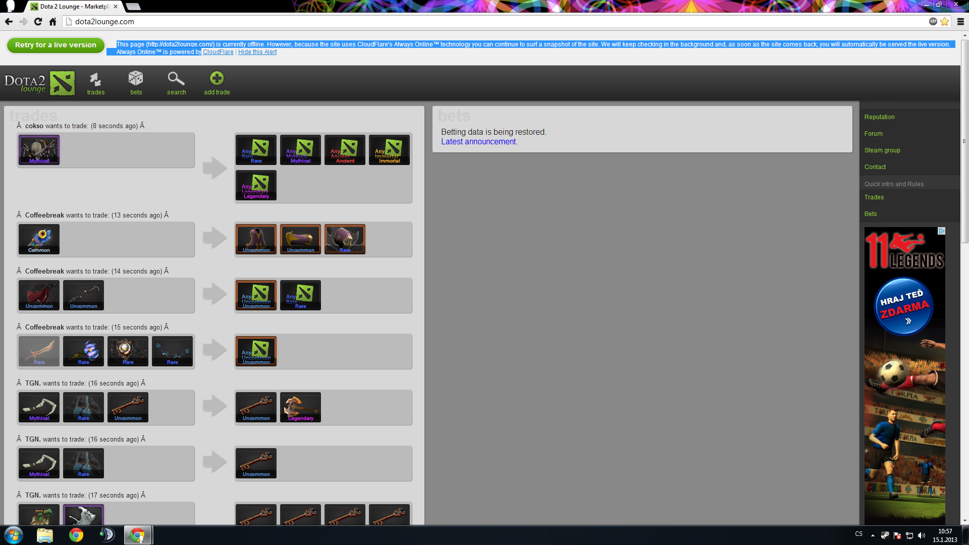 Zdravím, mám problém s jednou stránkou kde mi to už třetí den hlásí že je offline(chrome,explorer)ale všem známým normálně funguje zkousel jsem smazat cookies ale to nepohlo a nenapadá mě nic dalšího co by stálo za zkoušku.