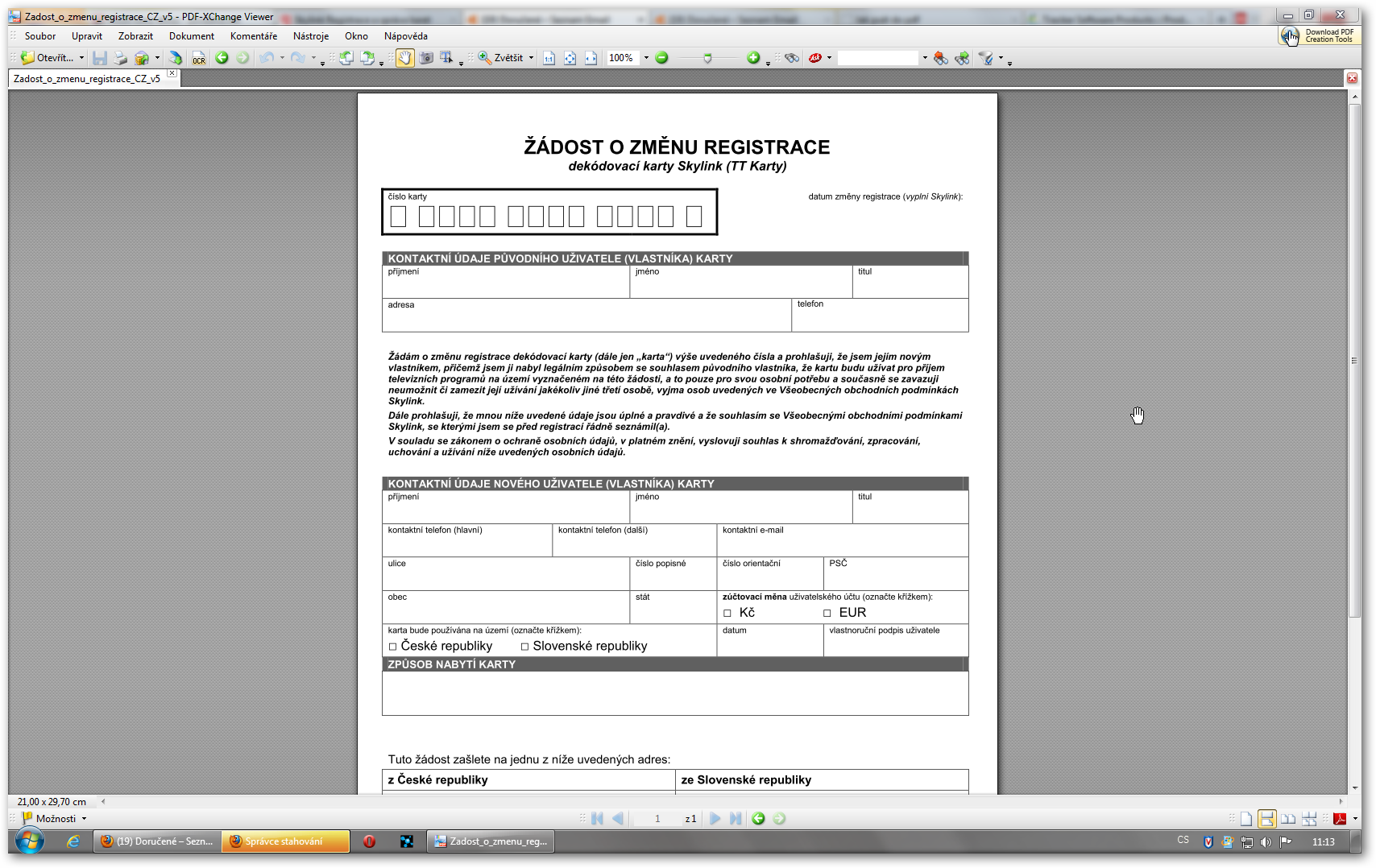 Nejedná se o "formulářové" PDF, ale pouze o tiskopis - stáhnout, vytisknout, vyplnit, zaslat poštou…