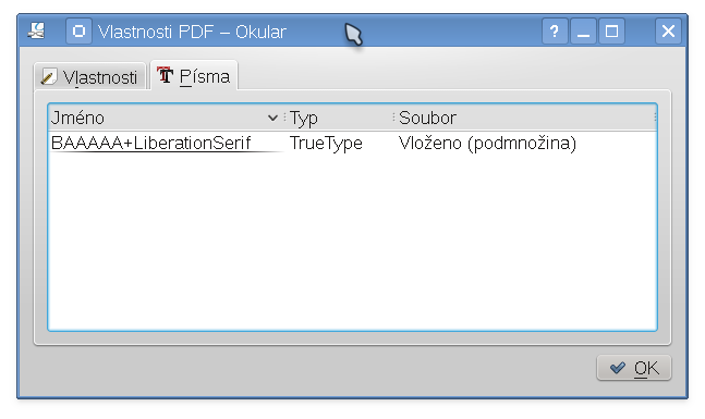 Ale písmo se přidává, jako ostatní údaje, při exportu do pdf!