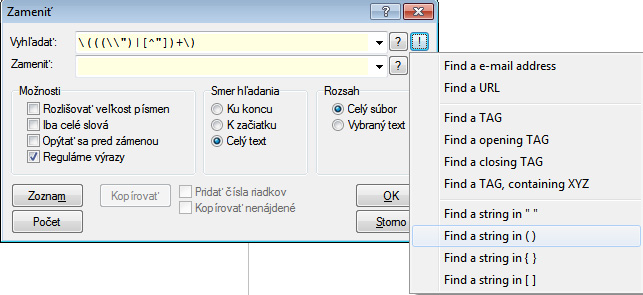 v PsPad-e to funguje. Po stlaceni Ctrl+H pouzit maly vykricnik pri prvom radku a zvolit moznost Find…