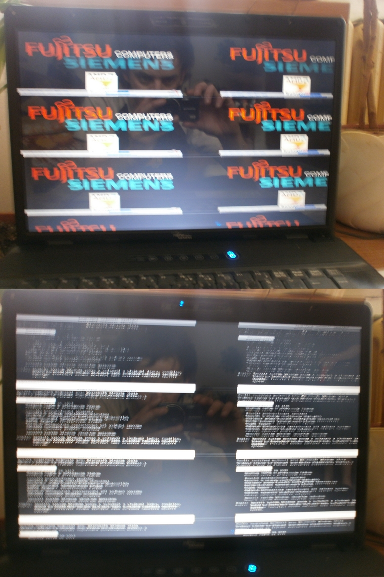 Na notebooku Fujitsu Siemens se mi rozdělil obraz na několik. Jde to nějak opravit, nebo to je na servis (např. vadný kabel k displeji, gr. karta...)
