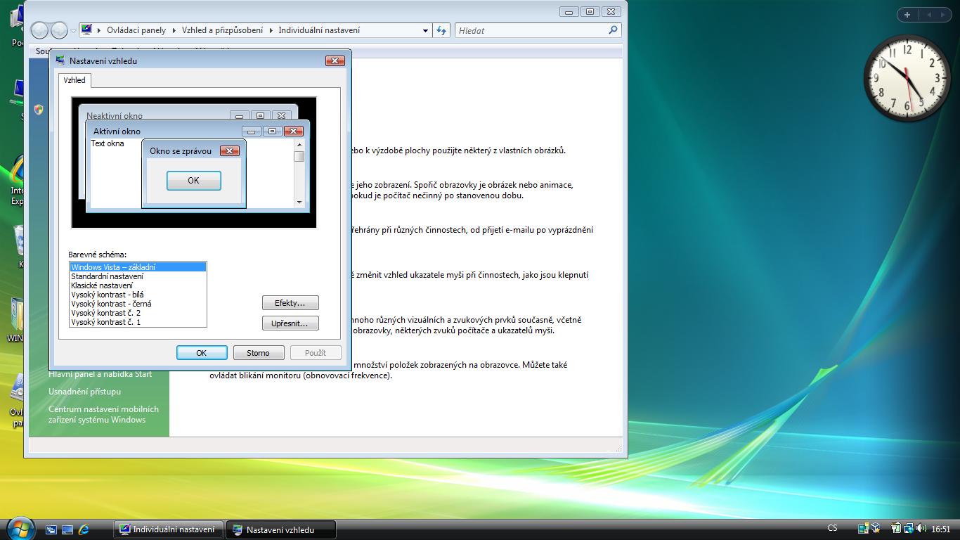 Nevěděl jsem, že Visty mají aero. Jenomže možnost nastavit aero není, pouze Vista základní. Vista je Home Premium. Internet tvrdí, že tam by měla tato možnost aera být, HW požadavky splňuje. Zde je ještě obrázek.
