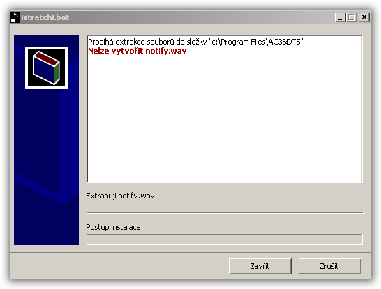 ta "chyba" je problém toho, že se snažíš rozbalovat nějaký winrar selfextract do program files a adresáře AC3+DTS - to tam instaluješ, nebo to je "samovolná" činnost toho "programu"? pokud je to instalace, pak instaluj pod adminem a použivej pod userem. Pokud je to "akce" programu, musíš nastavit práva.