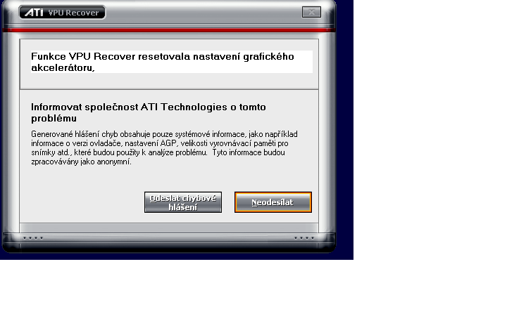 že nějaký VPU recover byla chyba nebo co a jestli chci odeslat hlášení Buď to opiš doslovně, anebo…