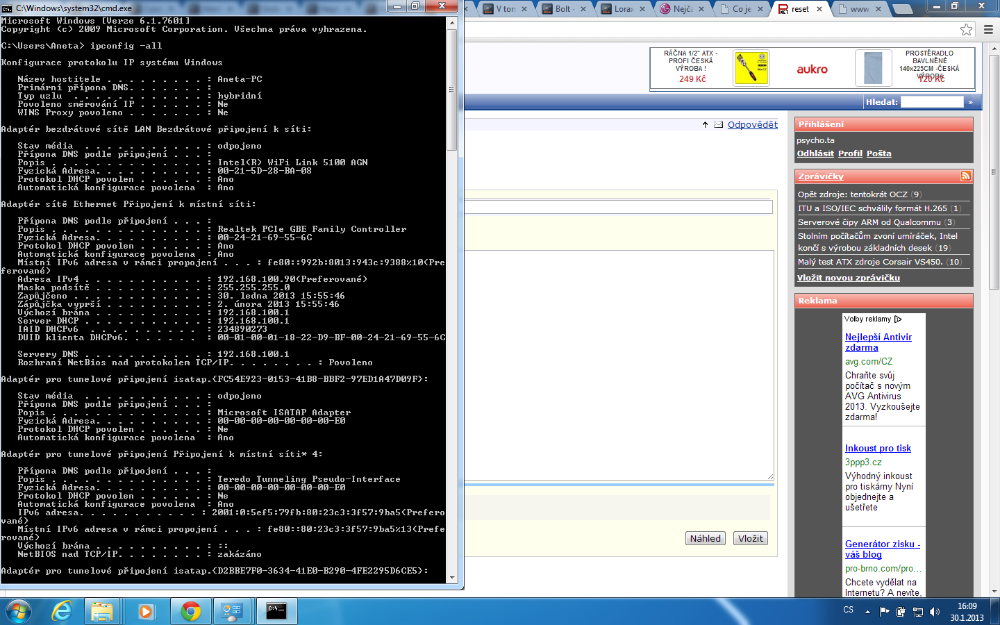 cmd říká toto a router pripojen skrze LAN samozřejmě